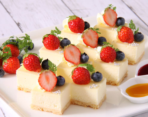 濃厚な味わいにこだわったオリジナルケーキ 長さ34cmのフリーカットタイプなのでお好きにカット! オーストラリア産クリームチーズを50%以上使用し、カスタードクリームとアカシア蜂蜜を加えた、濃厚でクリーミーな味わいのチーズケーキです。食感のアクセントに、相性の良いさっくりとしたクッキー生地で仕上げました。